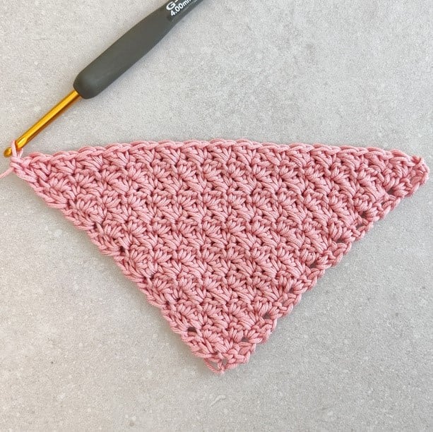 The C2C Suzette stitch is worked in a diagonal with the same method, you start from one corner, increasing both sides of the triangle, and when you reach the desired length you start decreasing on both sides, until reaching the other corner.